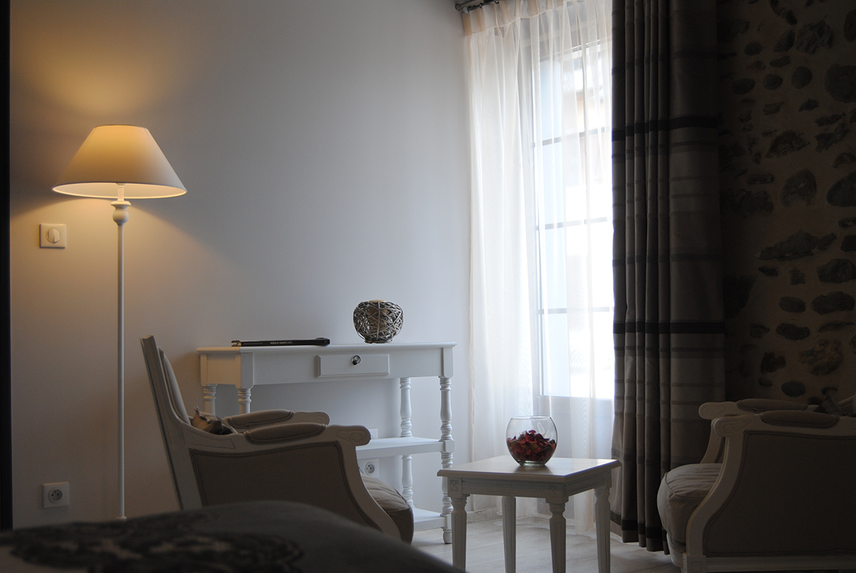 Chambre Joubarbe avec salon (1 lit de 180 avec articulation électrique de relaxation) salle d’eau privative.